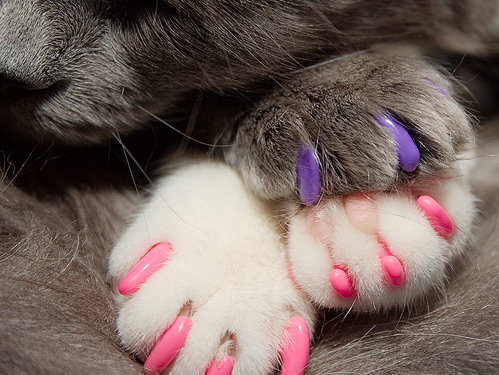 Ces capuchons en caoutchouc souple, disponibles en différentes tailles et couleurs, sont collés sur les griffes et durent généralement plusieurs semaines avant de devoir être remplacés.