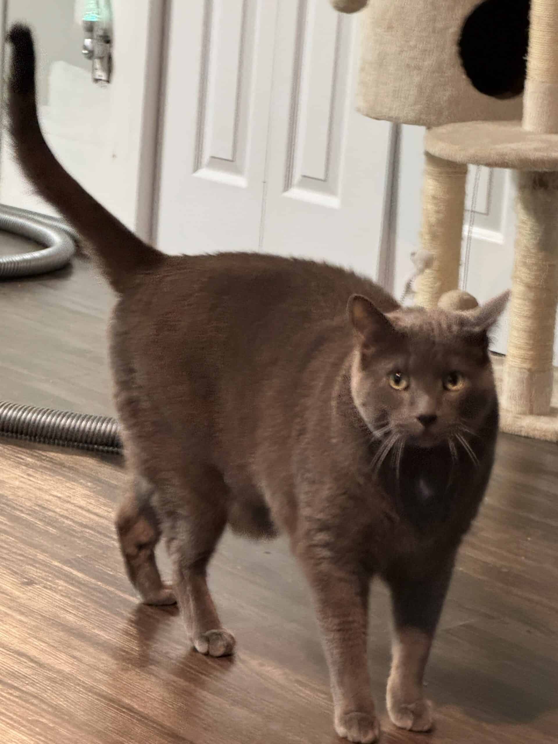 Grizou est un chat mâle de 7 ans, au tempérament sensible et réservé.