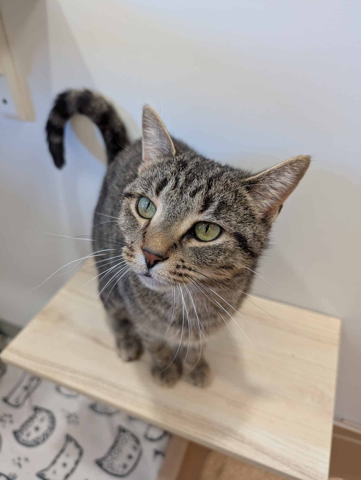 Voici Mioumiou, une magnifique petite chatte d’un an, aussi calme qu’affectueuse. Elle aime les caresses, les moments tranquilles, et surtout la présence humaine.