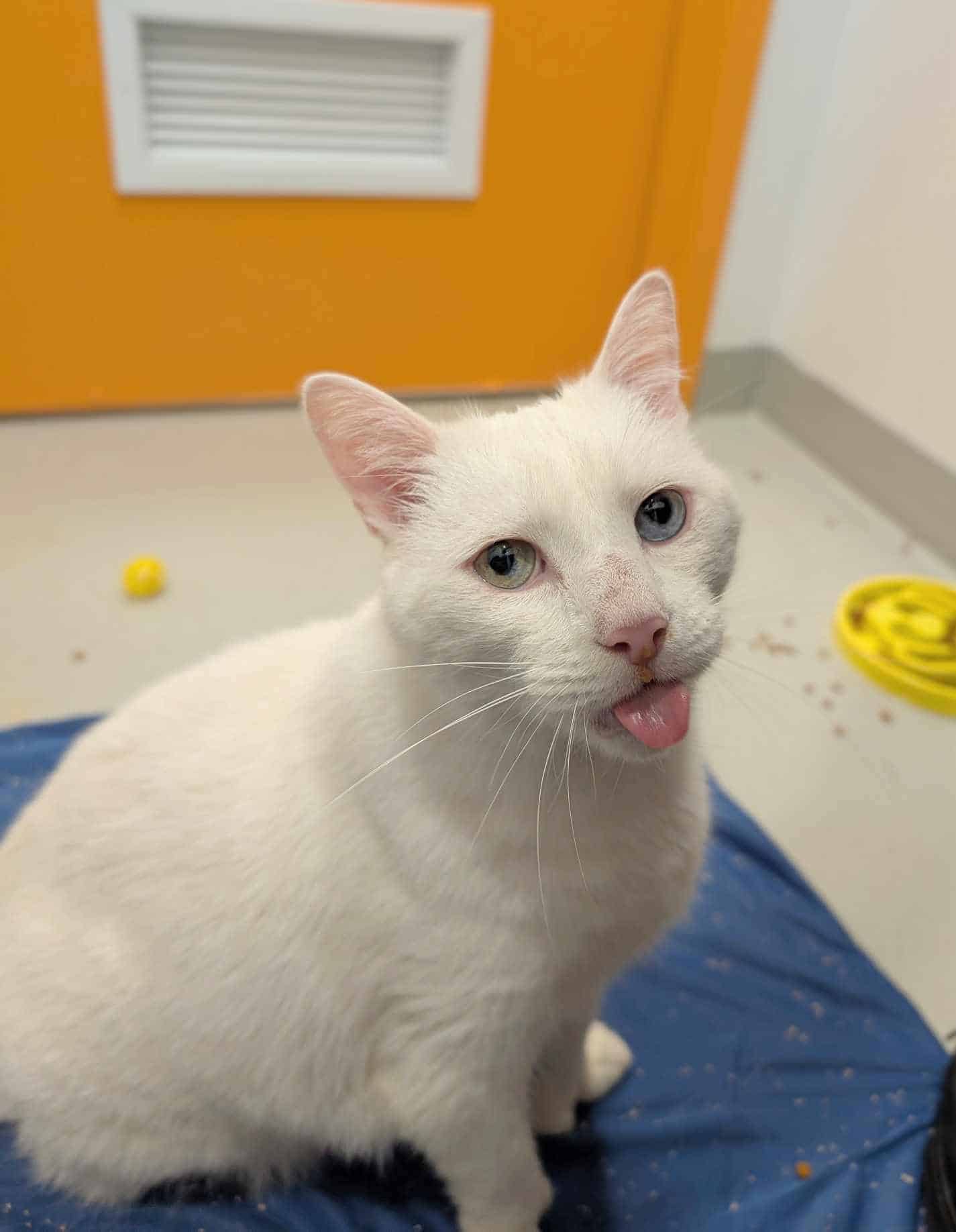 Avec ses beaux pouces en prime et son pelage blanc comme neige, Ti-Gars est un véritable trésor sur pattes. À 13 ans, ce gentil monsieur est super colleux, affectueux et toujours à la recherche de câlins. Il adore la présence humaine et saura vous faire fondre avec sa douceur et son regard plein d’amour. Offrez-lui une retraite bien méritée dans un foyer calme et aimant : il vous le rendra au centuple.