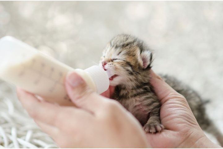 > Up to 21 days, the kitten must absolutely be fed every three or four hours with a special formula designed for kittens, using a suitable bottle. You will find everything you need in pet stores or veterinary clinics. Warning: never give cow’s milk to a kitten. This type of milk is not suitable and can cause diarrhea and several health problems.