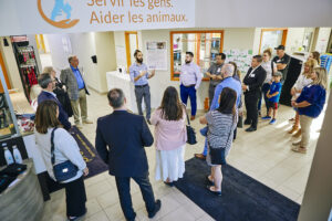 Étaient rassemblés pour ce 5 à 7 des élus et membres de l’administration des villes et municipalités clientes, des partenaires de longue date, nos membres du CA, des donateurs, sans oublier les employés – dont certains étaient déjà là aux débuts de l’aventure – et nos nombreux bénévoles qui aident quotidiennement le refuge et ses animaux.